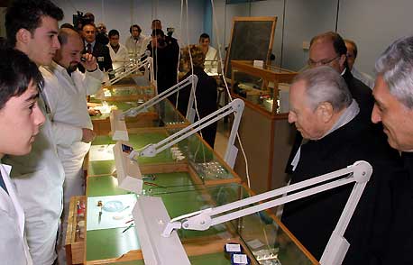 Il Presidente Ciampi durante la visita alle aule della Scuola del Centro di Arte Orafa "Il Tari".