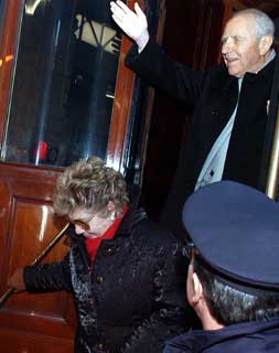 Il Presidente Ciampi con la moglie Franca all'arrivo alla stazione di Livorno.