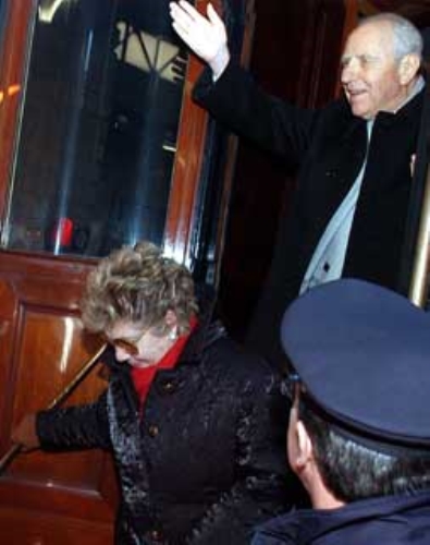 4. Il Presidente Ciampi con la moglie Franca all'arrivo alla stazione di Livorno.