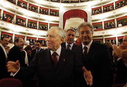 • Il Presidente Ciampi al suo arrivo questa al rinnovato Teatro Goldoni.