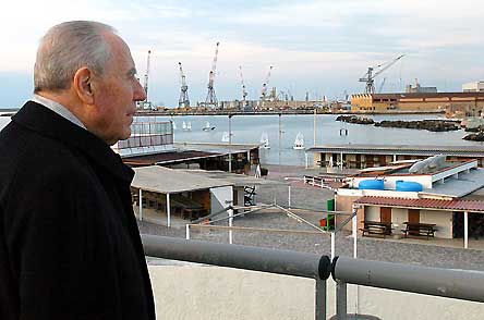4. Il Presidente Ciampi sulla Terrazza del cantiere dell'Acquario, durante la visita alla Terrazza...