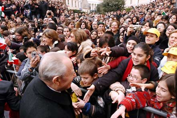 Il Presidente Ciampi tra i giovani in Piazza Eleonora d'Arborea in occasione della visita di due giorni in Sardegna