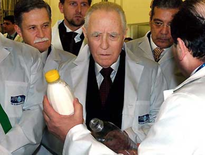 Il Presidente Ciampi durante la visita allo stabilimento lattiero-caseario.