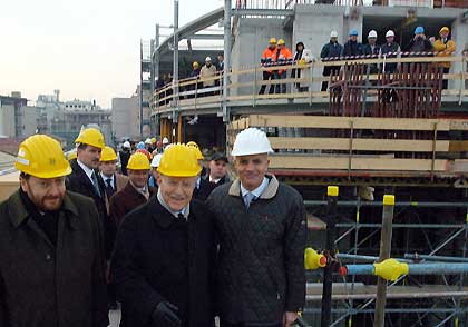 Il Presidente Ciampi, nella foto con il Sindaco di Milano Gabriele Albertini ed il Sen. Riccardo Decorato, durante la visita ai cantieri della Scala.