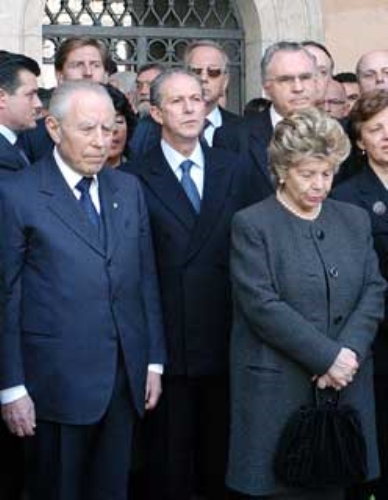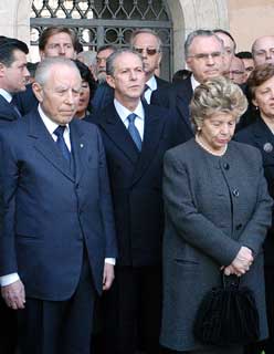 Il Presidente Ciampi con la moglie Franca, nella foto con il Ministro La Loggia ed il Vice Presidente del Senato Fisichella, osserva i tre minuti di silenzio in memoria dei Caduti per gli atti terroristici di Madrid