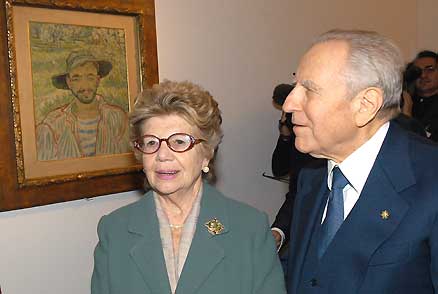 Il Presidente Ciampi con la moglie Franca durante la visita ai "Tesori ritrovati. I Carabinieri nell'arte e per parte", sullo sfondo un Van Gogh recuperato.