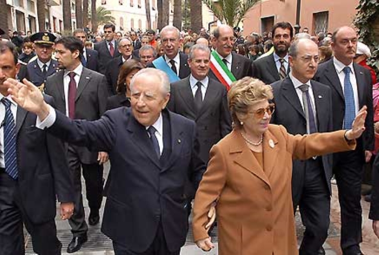 Il Presidente Ciampi con la signora Franca durante la breve passeggiata in città.