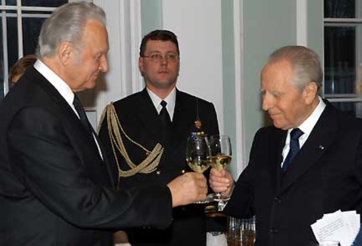 I Presidenti della Repubblica Italiana e di Estonia Carlo Azeglio Ciampi ed Arnold Ruutel durante il pranzo offerto in onore della Coppia presidenziale italiana al Palazzo Presidenziale di Kadriorg.