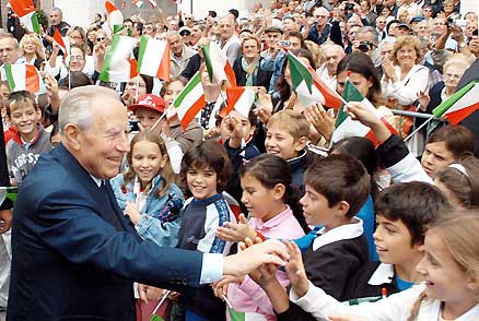 4. Il Presidente Ciampi al suo arrivo in Piazza Cavalli.