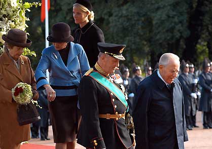 Il Presidente della Ciampi con la moglie Franca accolti dalle LL.MM. il Re Harald V e la Regina Sonja di Norvegia al Palazzo Reale.