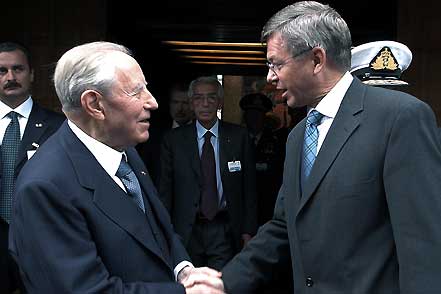 Il Presidente Ciampi con Kjell Magne Bondevik, Primo Ministro di Norvegia, al termine dei colloqui