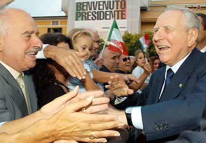 Il Presidente Ciampi al suo arrivo nella cittadina toscana.