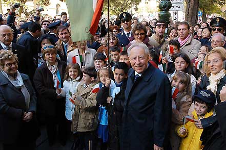• Il Presidente Ciampi in compagnia della moglie Franca al suo arrivo, in Prefettura