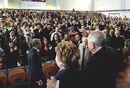 Il Presidente Ciampi con la moglie Franca, tra gli studenti dell'Università di Kore