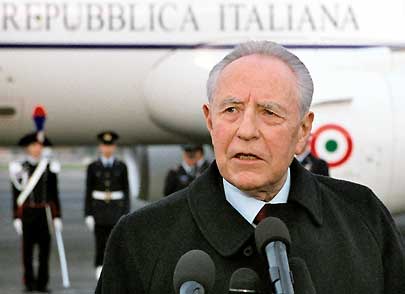 Il Presidente Ciampi, all'aeroporto di Ciampino, poco prima della partenza per la visita di Stato in Cina.