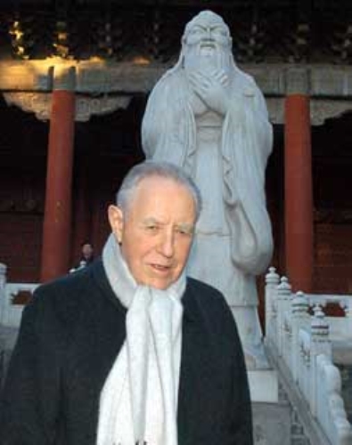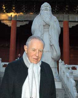Il Presidente Ciampi, davanti ala statua del filosofo Confucio, durante la visita al Tempio.