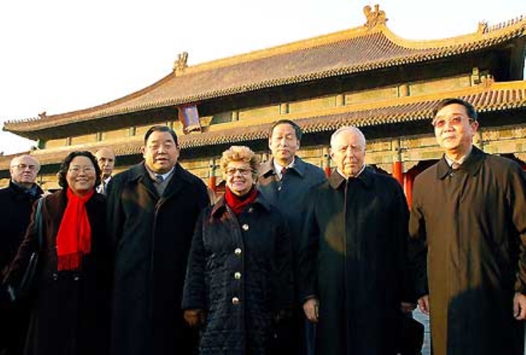 Il Presidente Ciampi con la moglie Franca, alla Città Proibita. A sinistra nella foto il Ministro dei Beni e le Attività Culturali Giuliano Urbani.