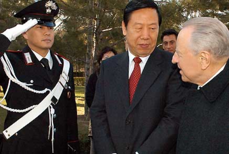 Il Presidente Ciampi con il Sindaco della Municipalità di Tianjin, Dai Xianglong, alla Residenza dell'Ambasciatore d'Italia, in occasione della visita alla mostra "Sulla via di Tianjin:1000 anni di relazioni tra talia e Cina".
