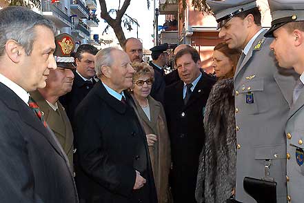 Il Presidente Ciampi con la moglie Franca, il Ministro dell'Economia e delle Finanze Domenico Siniscalco, il Comandante Generale della Guardia di Finanza Roberto Speciale ed i familiari del Finanziere Daniele Zoccola, in occasione della cerimonia di scoprimento del Busto al Finanziere