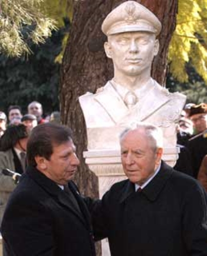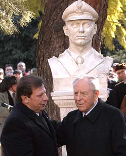 Il Presidente Ciampi con il papà di Daniele Zoccola, davanti al monumento alla memoria del Finanziere