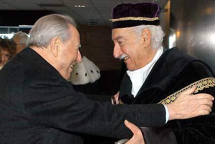 Il cordiale incontro del Presidente della Repubblica Carlo Azeglio Ciampi con lo Storico Gabriele De Rosa, al Campus dell'Università degli Studi di Salerno a Fisciano