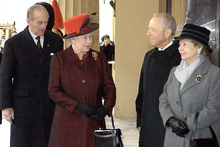 Il Presidente Ciampi con la moglie Franca, accolti da S.M. la Regina Elisabetta II e da S.A.R. il Principe Filippo Duca di Edimburgo a Buckingham Palace