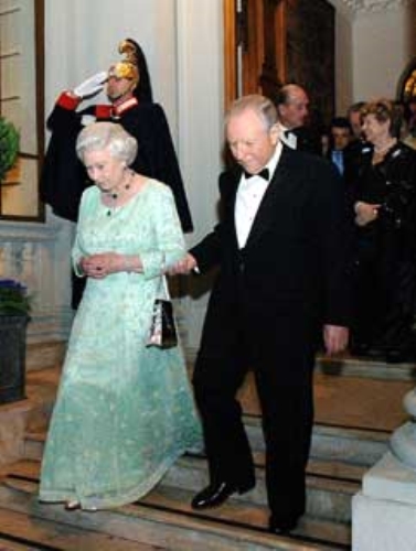 Il Presidente Ciampi con S.M. la Regina Elisabetta II al termine del ricevimento di restituzione, all'Ambasciata d'Italia.