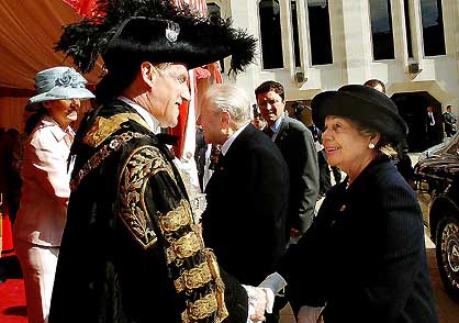 Il Presidente Ciampi, in compagnia della moglie Franca, all'arrivo alla Guildhall (City di Londra) accolti da Lord Mayor e Lady Mayoress
