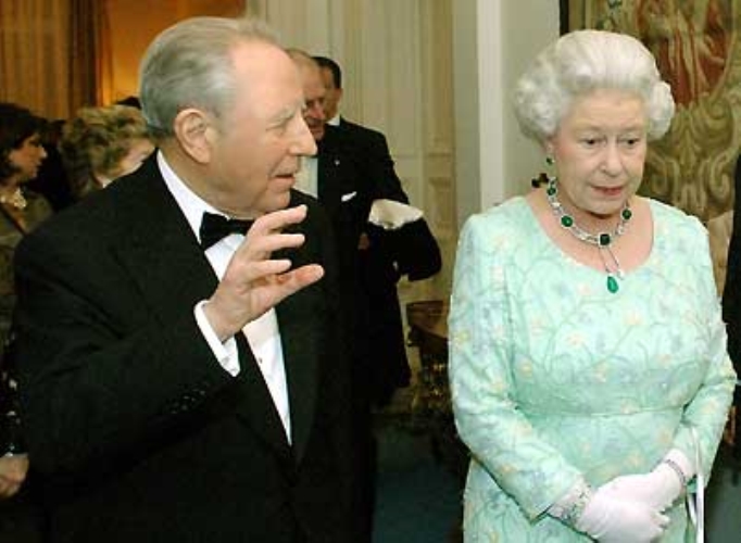 Il Presidente Ciampi con S.M. la Regina Elisabetta II, all'Ambasciata d'Italia durante il ricevimento di restituzione.