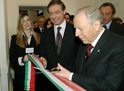 Il Presidente Ciampi, nella foto con il Vice Ministro del Commercio Estero Adolfo Urso ed il Presidente dell'ICE Beniamino Quintieri, alla Royal Academy, inaugura la Mostra "Luxury in Living" organizzata dall'ICE.
