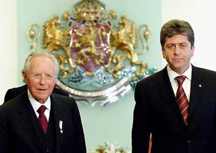 Il Presidente Ciampi con il Presidente della Repubblica di Bulgaria, Georgi Parvanov, al termine dell'incontro con i giornalisti, al Palazzo Presidenziale.