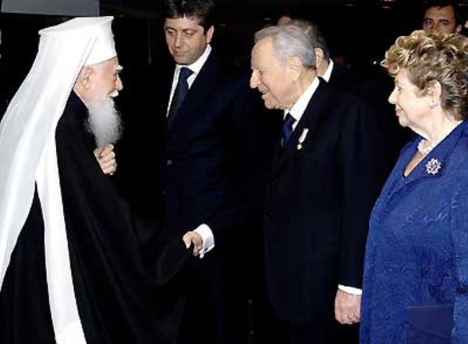 Il Presidente Ciampi con a fianco la moglie Franca ed il Presidente della Repubblica bulgara, Georgi Parvanov, saluta il Patriarca di Bulgaria Sua Santità Maxim, in occasione del Pranzo di Stato.