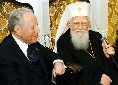 Il Presidente Ciampi con Sua Santità Maxim, Patriarca di Bulgaria e Metropolita di Sofia, nella sede del Patriarcato.