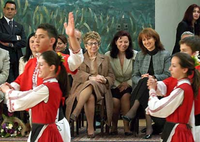 La Signora Franca Pilla Ciampi con la moglie del Presidente bulgaro, Zorka Parvanova, al Liceo di Lingua e Cultura Italiana di Gorna Banja.