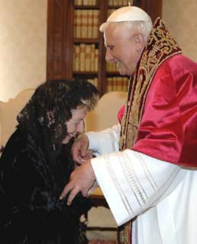La Signora Franca Pilla Ciampi con il Sommo Pontefice Benedetto XVI in occasione della visita ufficiale nella Santa Sede