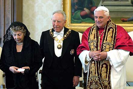 Il Presidente Ciampi e la moglie Franca con il Sommo Pontefice Benedetto XVI in occasione della visita ufficiale nella Santa Sede