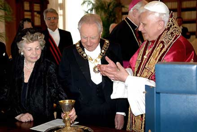 Un momento dell'incontro del Presidente della Repubblica Italiana Carlo Azeglio Ciampi e della moglie Franca con il Sommo Pontefice Benedetto XVI in occasione della visita ufficiale nella Santa Sede.