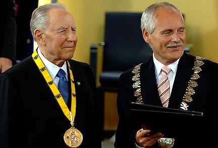 Il Presidente Ciampi con il Sindaco della città Jurged Linden, subito dopo aver ricevuto il Premio Carlo Magno.