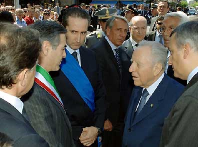 Il Presidente Ciampi, al suo arrivo nella città laziale insieme alle Autorità politiche della Regione, Provincia e Comune.