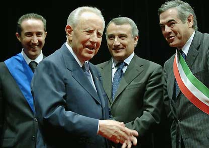Il Presidente Ciampi con (da sin: il Presidente della Provincia Armando Cusani, il Presidente della Regione Piero Marrazzo ed il Sindaco della città Vincenzo Zaccheo, al termine del suo intervento al Palazzo della Cultura.