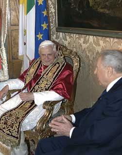Il Presidente Ciampi a colloquio con Sua Santità Benedetto XVI, nel suo studio al Quirinale