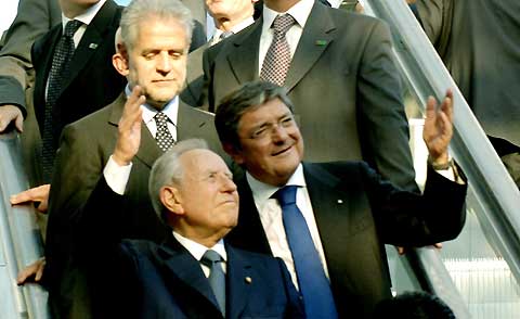 Il Presidente Ciampi, nella foto con Luigi Roth, Presidente della Fondazione Fiera di Milano ed il Presidente della Regione Roberto Formigoni, durante la visita alla nuova Fiera.