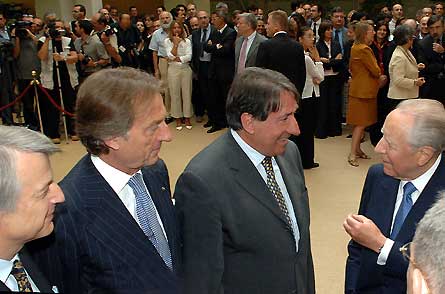 Il Presidente Ciampi si intrattiene con i Presidenti Innocenzo Cipolletta, Luca Cordero di Montezemolo ed il Direttore del "Sole 24 Ore", durante la visita alla sede del giornale.