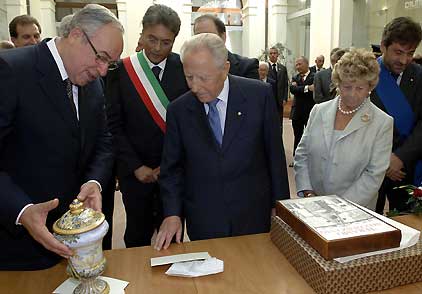 Il Presidente Ciampi con la moglie Franca durante la visita nella città abruzzese con il Presidente della Regione Ottaviano Del Turco, il Sindaco Giovanni Chiodi ed il Presidente della Provincia Ernino D'Agostino.
