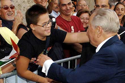 Il Presidente Ciampi durante l'incontro con la gente della città abruzzese