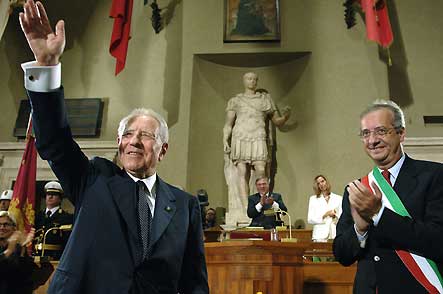Il Presidente Ciampi, a fianco il Sindaco di Roma Walter Veltroni, durante la cerimonia di conferimento della cittadinanza onoraria
