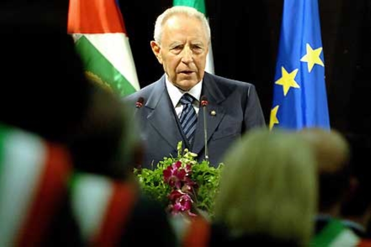 Il Presidente Ciampi durante il suo intervento alle Autorità istituzionali, civili, militari, religiose ed i Sindaci della Provincia