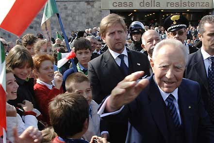 Il Presidente Ciampi tra la gente al termine del suo intervento alle Autorità civili, militari, religiose ed i Sindaci della Provincia