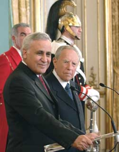 Il Presidente Ciampi con Moshe Katsav, Presidente dello Stato d'Israele, durante l'incontro con la stampa.