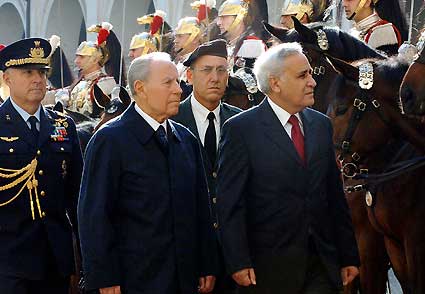 Il Presidente Ciampi con il Presidente dello Stato d'Israele, Moshe Katsav, durante la cerimonia di accoglienza.